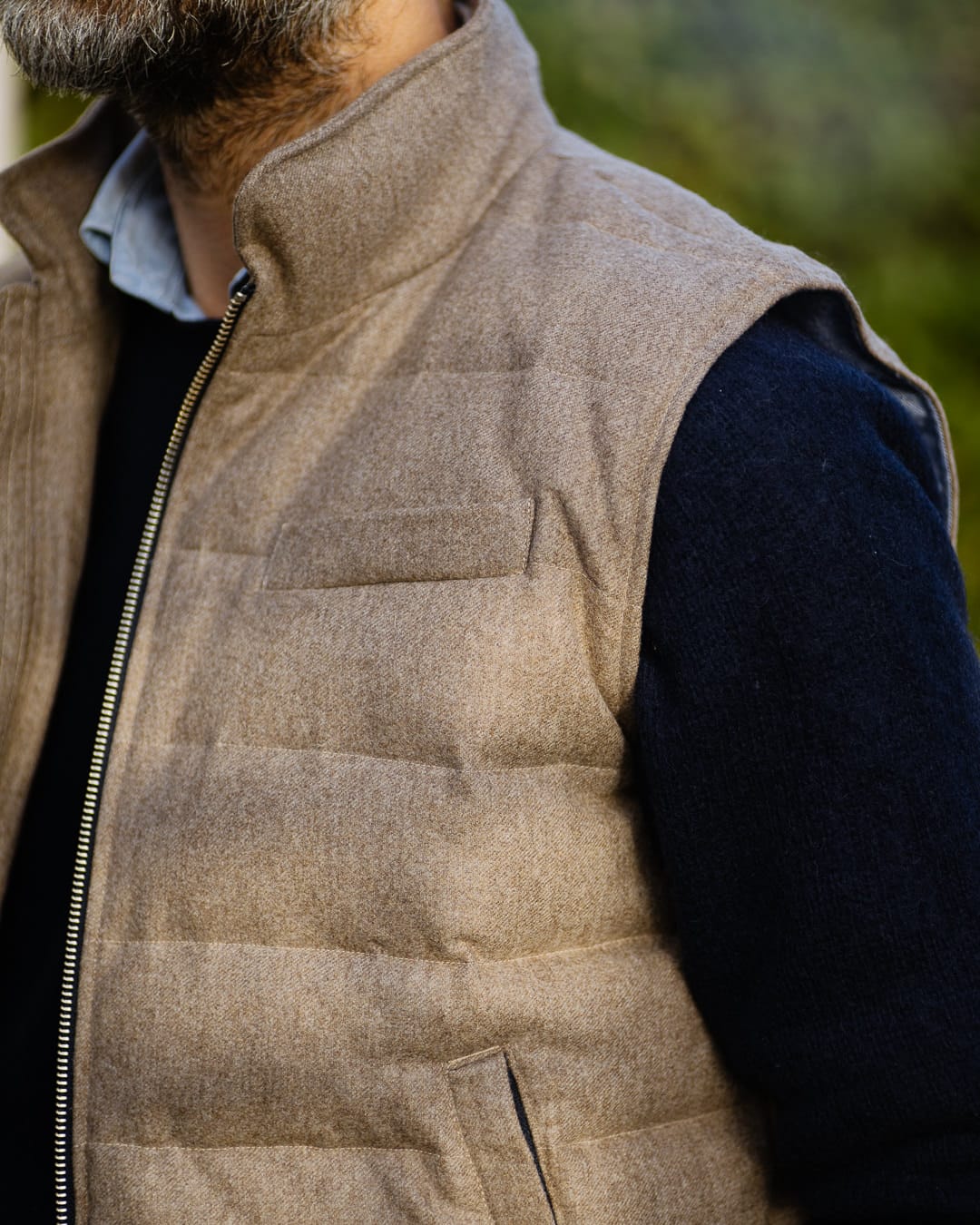 Dans un village de Toscane, j’observe un vieil homme portant un gilet matelassé sans manches au-dessus de sa chemise. Un vêtement simple, pratique, élégant sans effort.