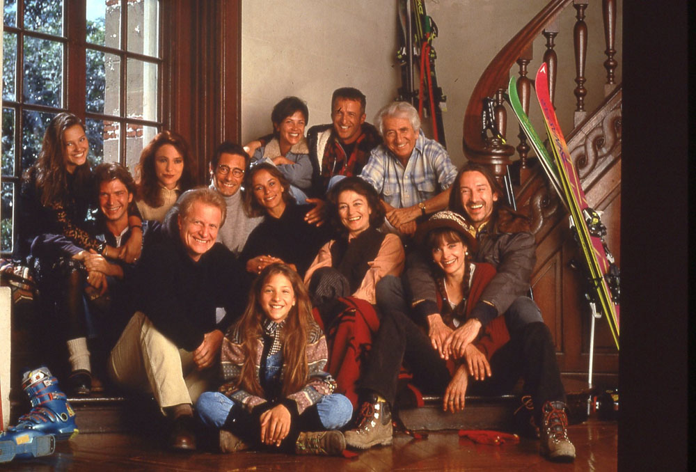 Vacances de Noël dans un chalet cossu. Une famille recomposée qui rit, pleure, crie et se retrouve. L’ensemble col roulé blanc sous le pull moniteur col V de Daniel Gélin évoque les grandes heures du vestiaire des moniteurs de ski.