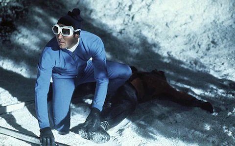 Peut-être le meilleur Bond, même sans acteur culte. Une référence vestimentaire absolue. Combinaison bleu ciel moulante, lunettes futuristes, poursuites en altitude. Bond n’a jamais été aussi alpin ni aussi graphique. Le ski des années soixante dans sa version la plus stylisée.