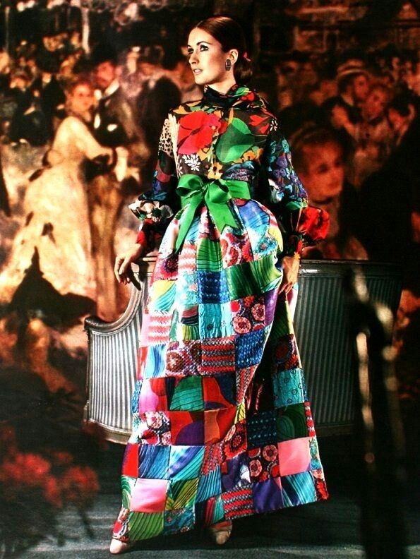 Chez Abraham naissent alors des soieries imprimées d’une richesse rare. Des motifs floraux intenses, presque picturaux, des couleurs posées comme sur une toile. Les tissus ne sont pas décoratifs. Ils portent déjà une idée de silhouette.