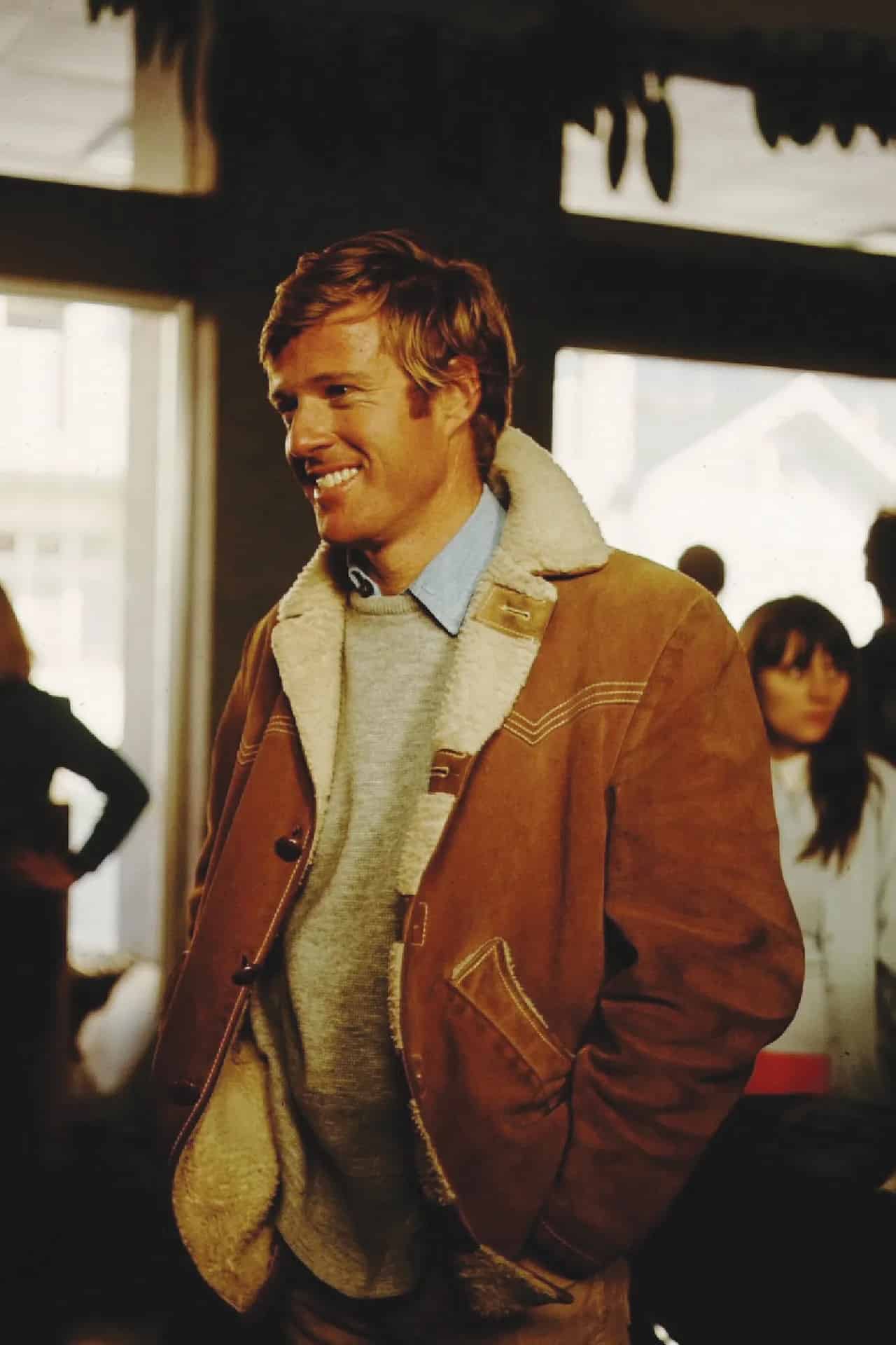 Dans Butch Cassidy, la ceinture western et les boots racontent l’Ouest rebelle. Dans Downhill Racer, le 3/4 en peau lainée incarne l’Amérique sportive et conquérante. Dans Out of Africa, la slack jacket d’aventurier inscrit Redford dans la tradition coloniale chic.