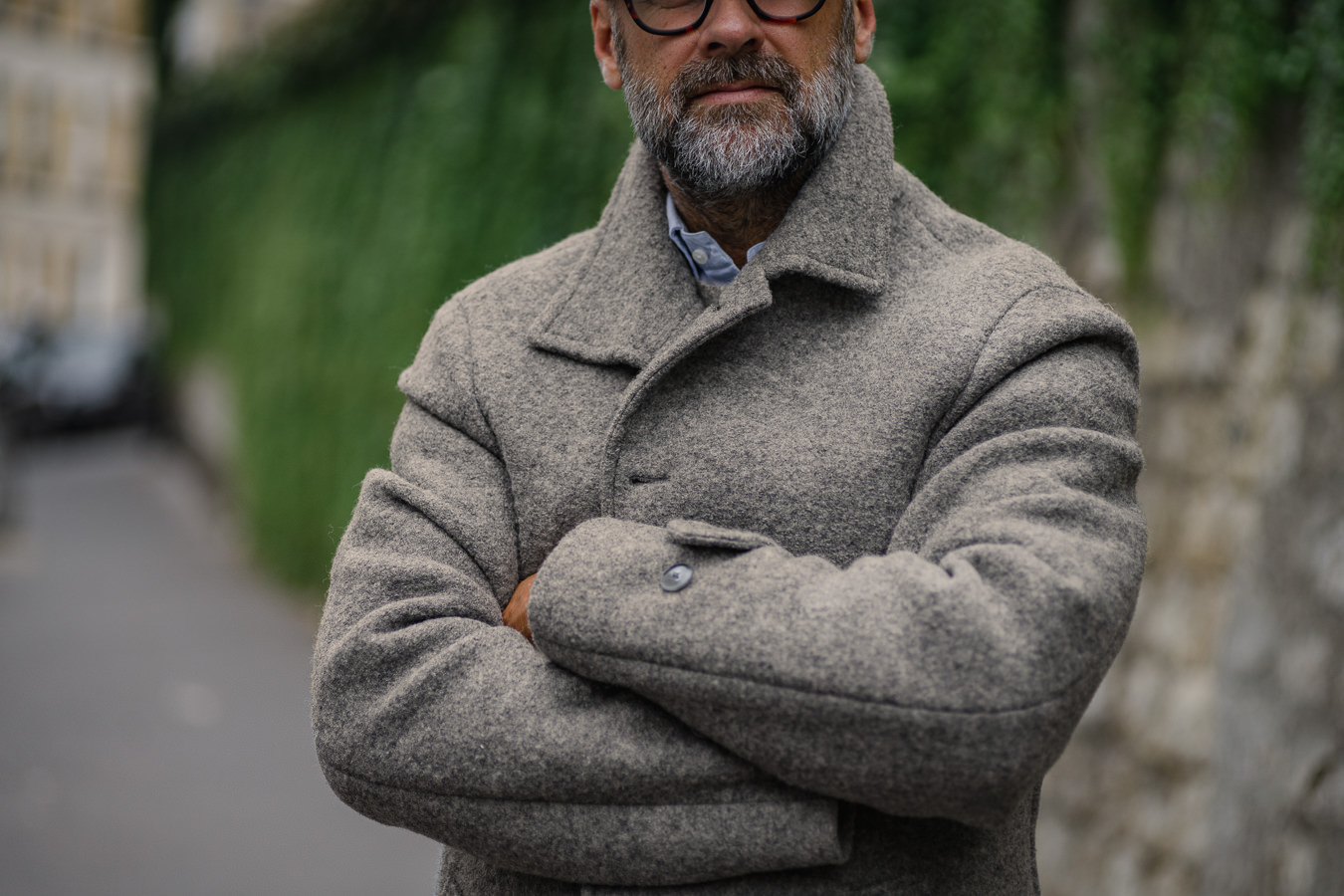 Une coupe droite simple, une longueur au genoux parce que c’est le minimum, un généreux col chemise que vous pourrez redresser et un montage sans doublure ni padding pour la pureté, voila la définition de notre Car Coat !