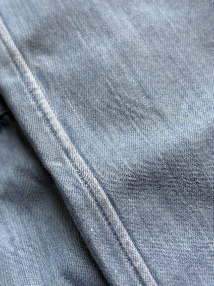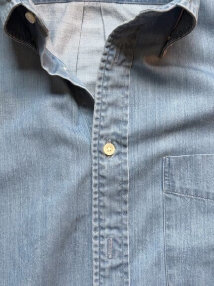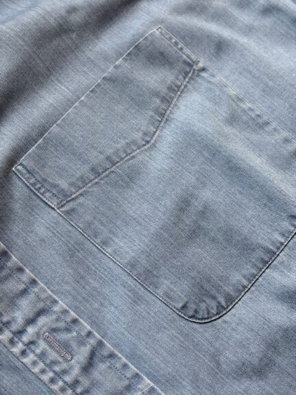 Une chemise en denim japonais entièrement fabriquée à Okayama. Du tissu à la couture des chemises, en passant par la finition du produit final, l’ensemble du processus est réalisé à Okayama. Tissé à partir d’un fil fin teint à la corde, le tissu est doux et léger, ce qui en fait un tissu idéal pour une chemise en denim de luxe.