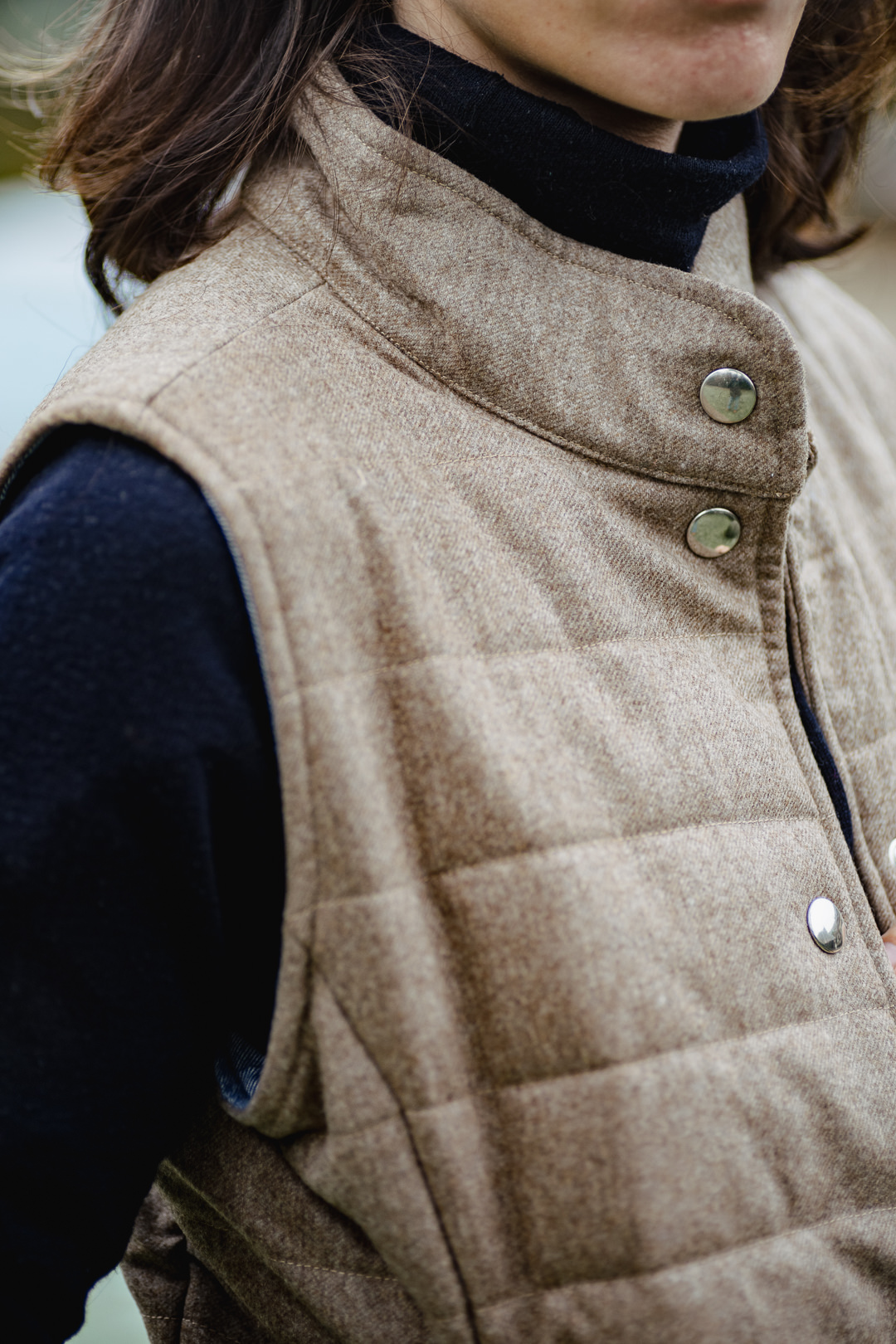 Son matelassage donne un côté sport à la tenue, il modernise l’aspect du gilet traditionnellement sans garnissage. Un côté doudou qui donne de la détente à la tenue sans renier l’élégance.