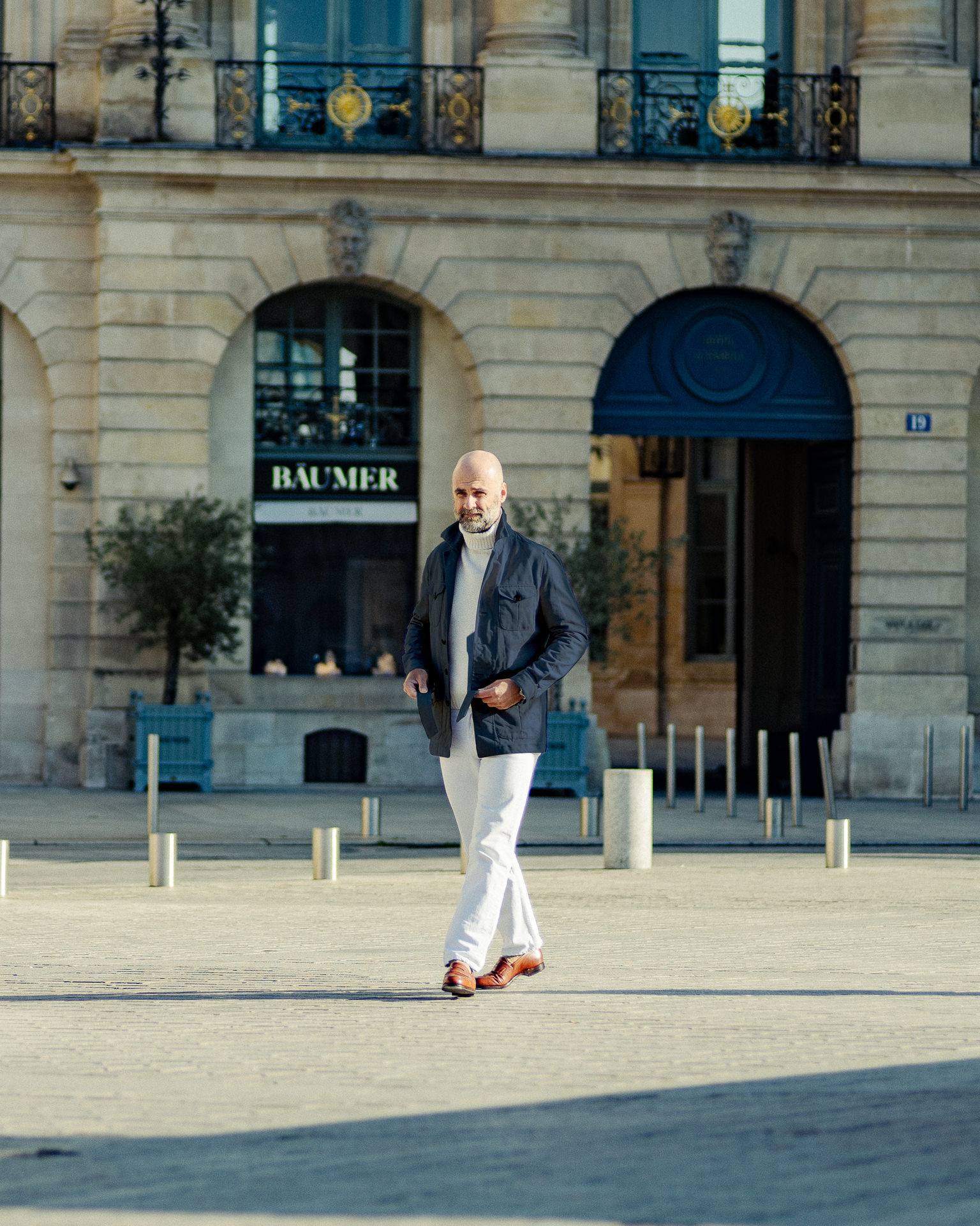 La sneaker fonctionne très bien avec la saharienne. Il s’agit d’un vêtement non formel, il fonctionne avec des mises décontractées. On portera volontiers une paire de Converse All Star écrue, de Superga blanche ou des New Balance 991 grises par exemple. Ce n’est que nôtre avis, à vous de trouver celles qui conviennent le mieux à votre style.