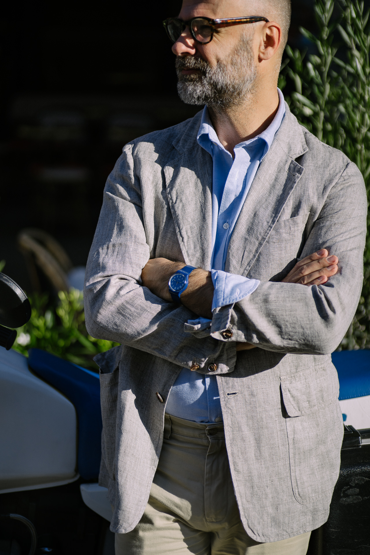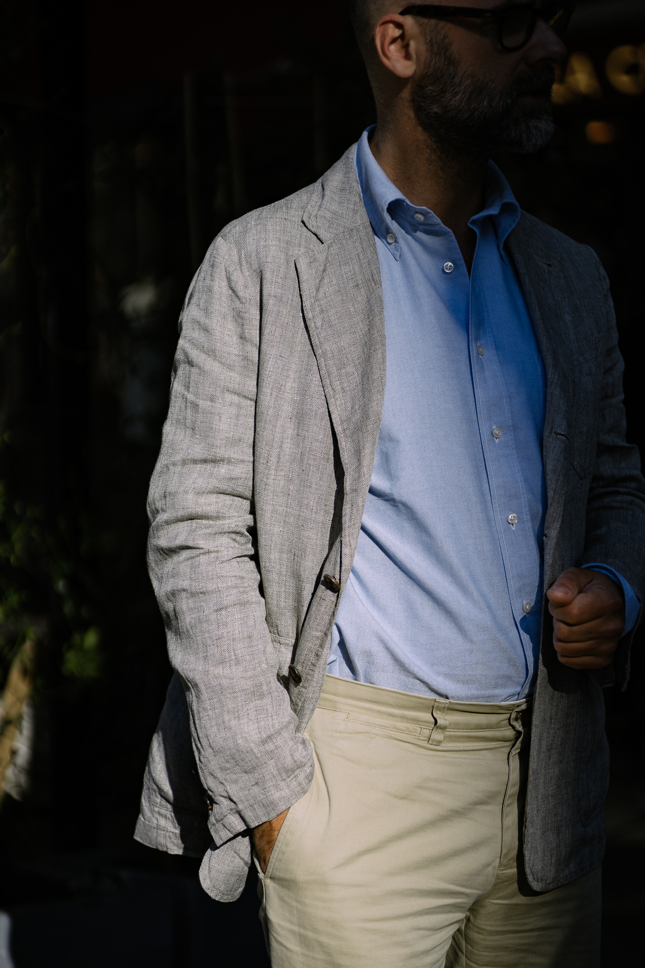 Tout l’esprit de la slack jacket inventée par Brooks Brothers en 1918 avec le modèle Number One ; épaules naturelles, revers larges mais pas trop, construction souple, une fente arrière, deux poches plaquées, 3 boutons avec le revers enroulant le 3ème jusqu’au bouton du milieu.