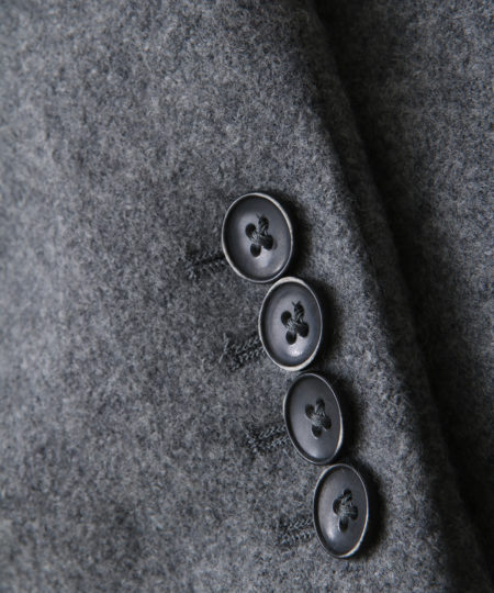Cette veste DUE s’associe à une laine flanelle gris souris. Sa texture amène un grand confort au porté. Cette veste est entièrement surpiquée aux revers, aux poches et sur les fentes arrières.